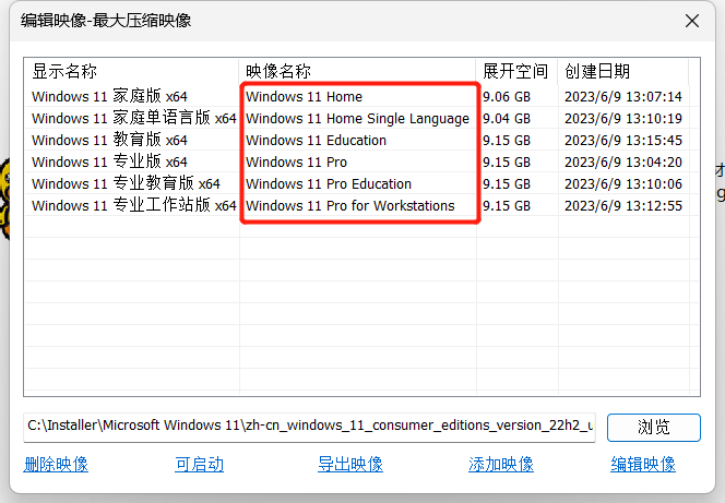 可以用 DISM、DISM++、Wimlib 等工具查询 ISO 包含的映像名称
